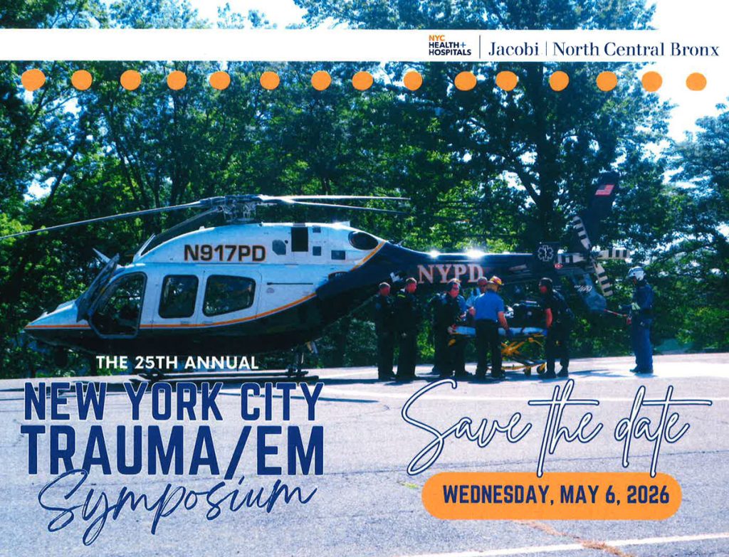 The annual New York City Trauma/EM Symposium represents the longest running regional conference dedicated solely to the management of trauma patients. NYC Health + Hospitals | Jacobi has hosted some of the world’s foremost leaders in trauma care at the Symposium and continues to attract internationally recognized faculty. The program has been especially designed for all trauma professionals including surgeons, emergency physicians, intensivists, advanced practice providers, as well as nursing staff and pre-hospital care providers.